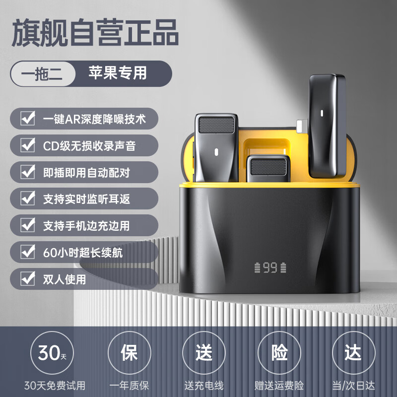领臣 无线领夹麦克风直播收音麦一拖二收音器手机直播主播声卡降噪抖音短视频拍摄K歌录音户外便携话筒小蜜蜂价格:218.00元!