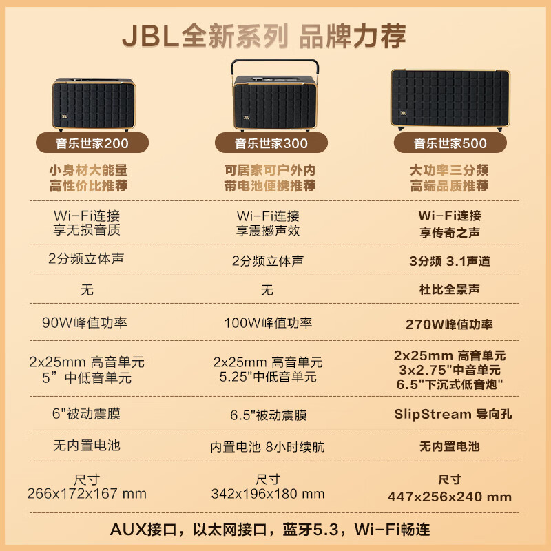 JBL 音乐世家500蓝牙音箱音响A500家用桌面台式电脑音响WIFI无损音质低音炮AUTHENTICS500价格:5699.00元!