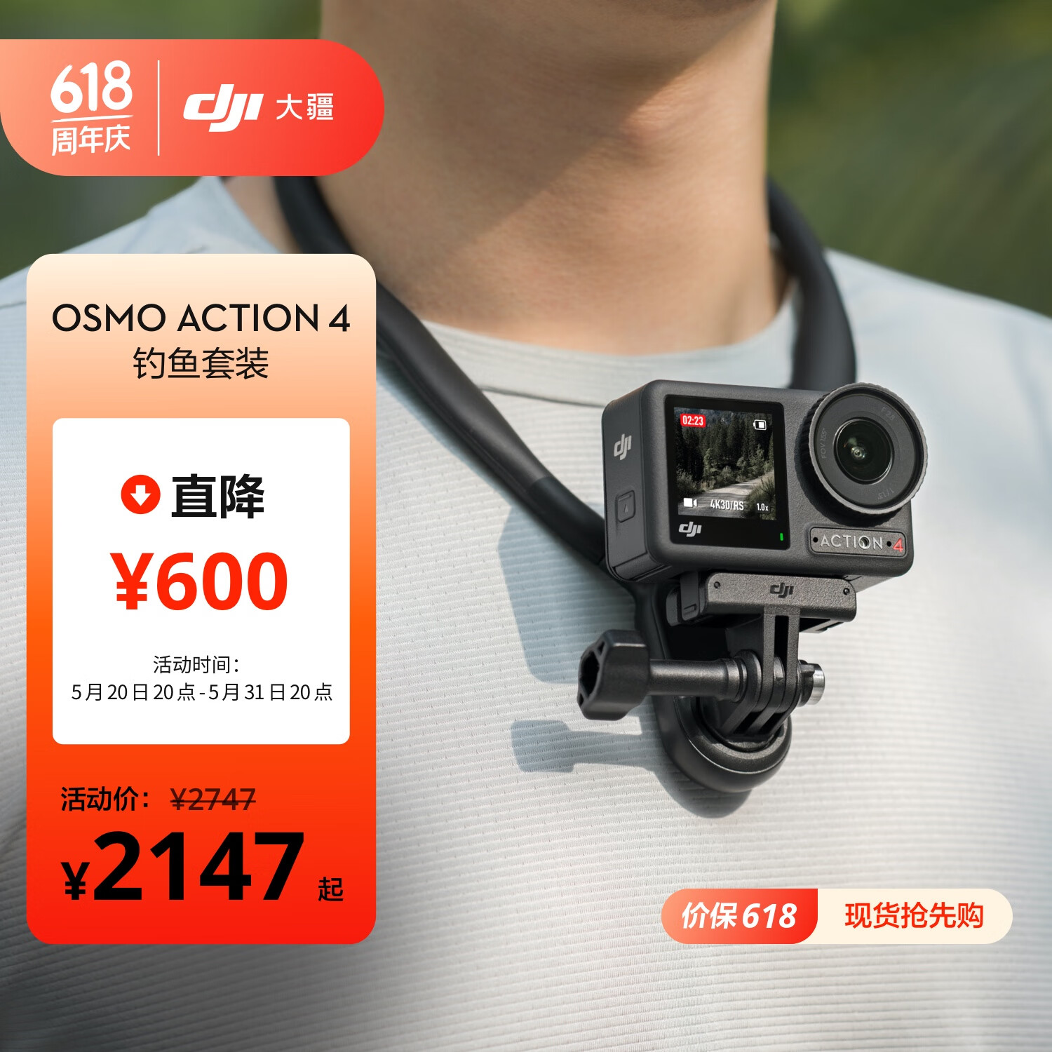 大疆 DJI Osmo Action 4 钓鱼套装 灵眸运动相机 摩托车山地公路骑行潜水防抖户外vlog相机 摄像机价格:2147.00元!