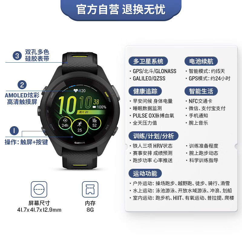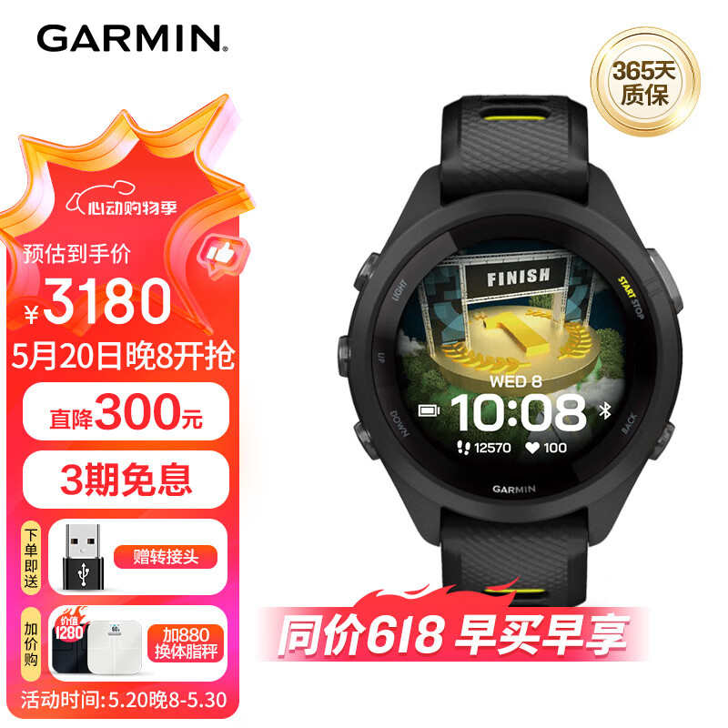 佳明(GARMIN)Forerunner265S户外运动智能手表心率血氧铁三滑雪多频多星极夜黑价格:3180.00元!
