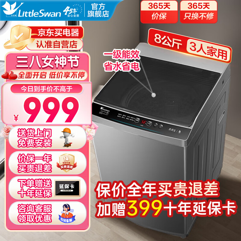 小天鹅(LittleSwan)波轮洗衣机全自动直驱变频 8公斤免清洗不脏桶 升级除螨TB80V23DB[官方直发]价格:959.00元!