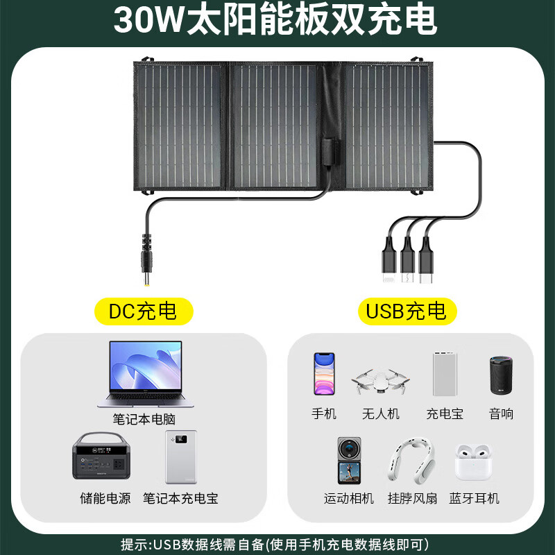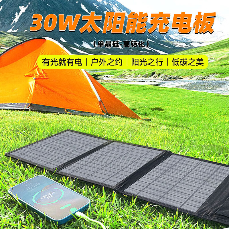 贝视特【太阳能充电板】30W大功率光伏太阳能充电宝手机快充USB/DC户外充电器家用折叠便携 30W太阳能充板|单晶硅高转化-黑色升级款价格:259.00元!