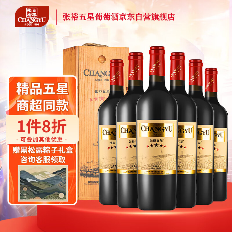 张裕(CHANGYU)五星精品赤霞珠干红葡萄酒 750ml*6瓶整箱礼盒装 国产红酒价格:2388.00元!