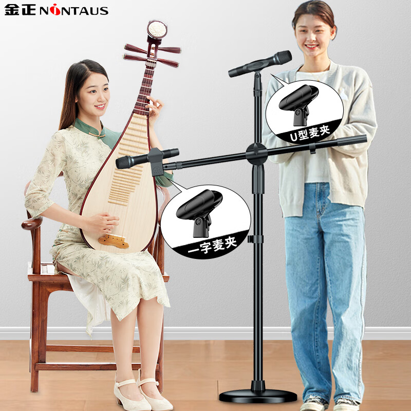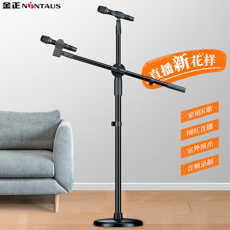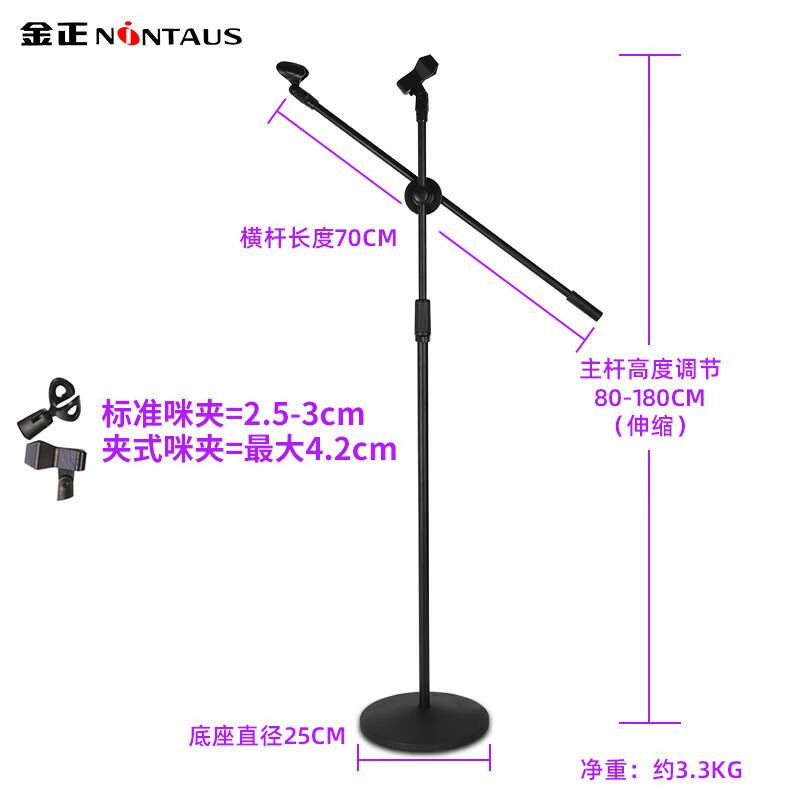 金正 NINTAUS HY-105 麦克风话筒支架话筒架 麦架落地直播钢管管体伸缩录音舞台支架设备配咪夹价格:139.00元!