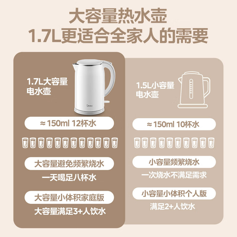 美的(Midea)电水壶热水壶304不锈钢水壶防烫暖水壶净甜大容量家用开水壶烧水壶智能断电MK-SH17M301A价格:69.00元!