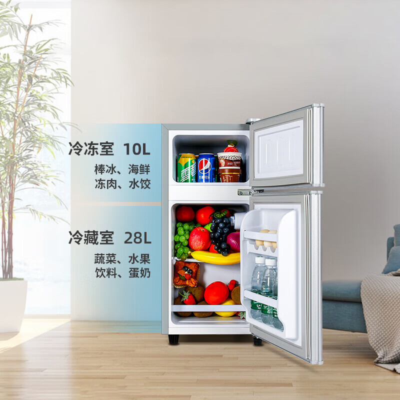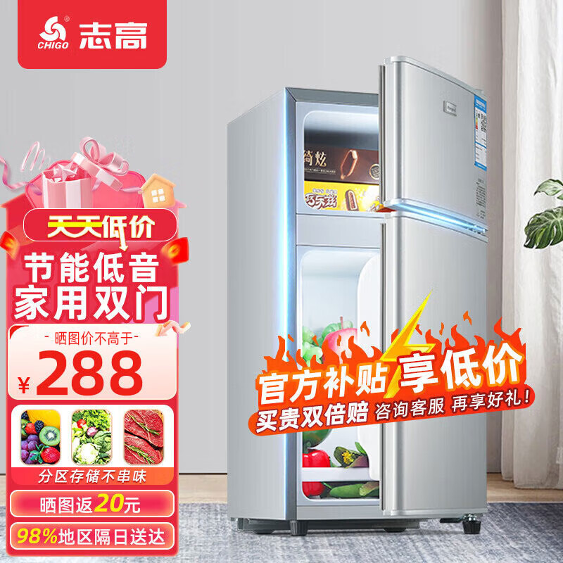 志高(CHIGO)小冰箱双门宿舍租房家用冷藏冷冻双开门迷你电冰箱节能保鲜小冰箱BCD-38A118LS银色价格:307.90元!
