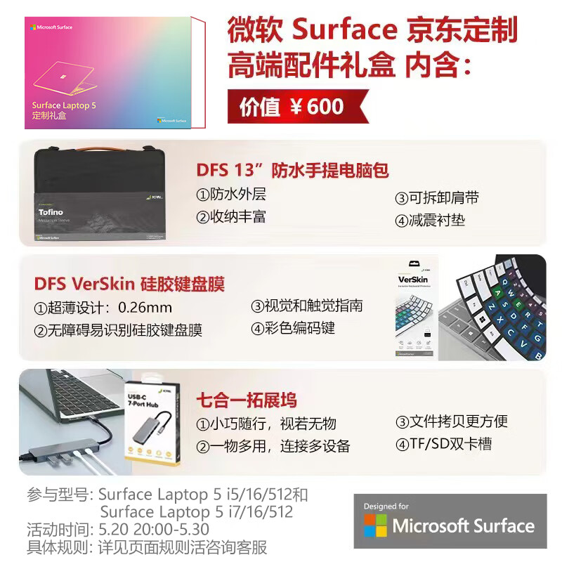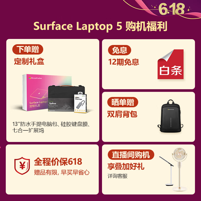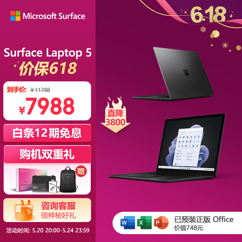 微软Surface Laptop 5轻薄笔记本电脑 i5 16G+512G 典雅黑 Evo认证13.5英寸2.2K高色域触控屏价格:7988.00元!