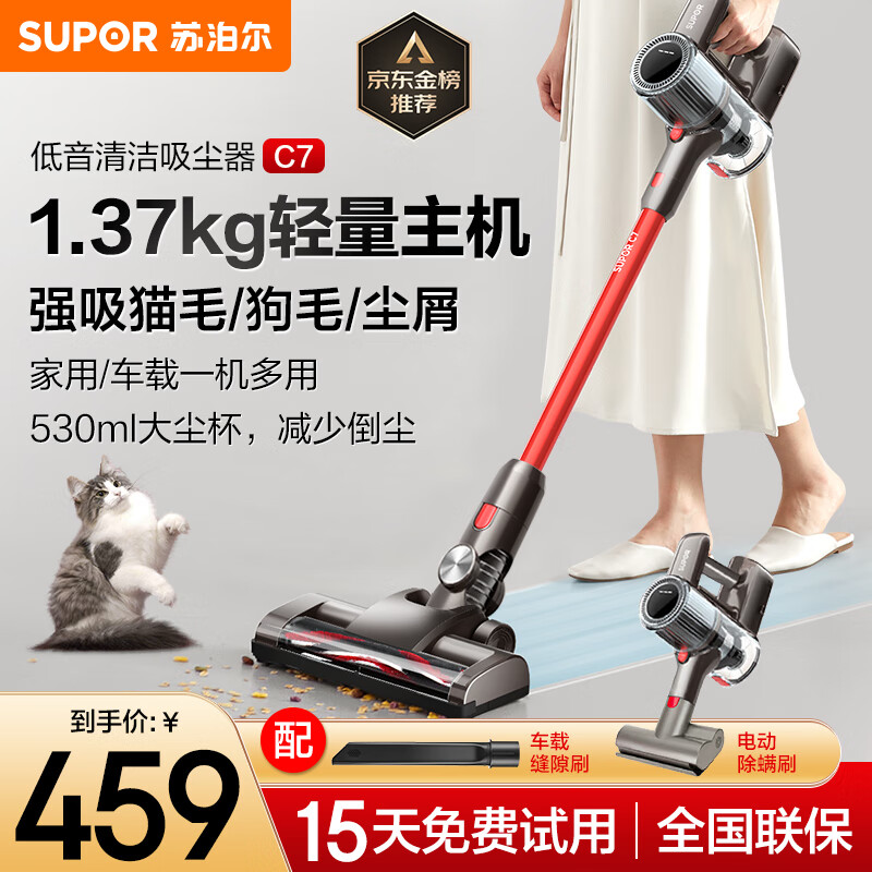 苏泊尔 (SUPOR ) 无线手持吸尘器家用大吸力车载便携立式充电 宠物猫毛狗毛地毯一键倒尘VCS67A-C7价格:459.00元!