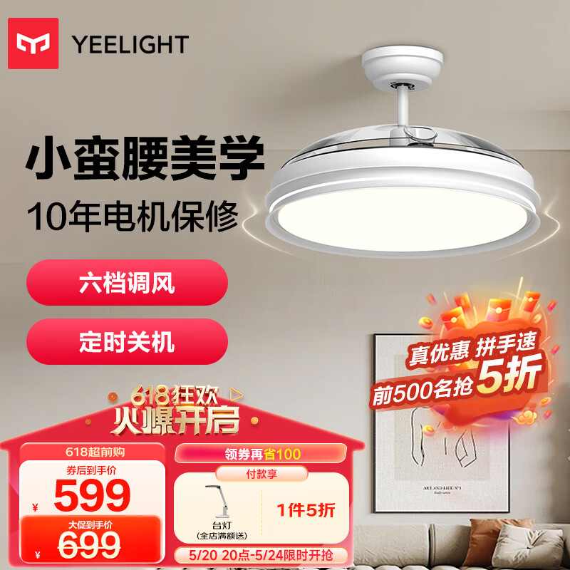 Yeelight易来直流变频小蛮腰风扇灯LED吊扇灯隐形扇叶简约餐厅卧室客厅价格:1398.00元!