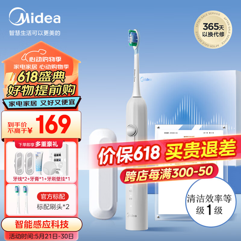 美的(Midea)电动牙刷成人情侣款礼物 声波震动礼盒智能压感 推荐生日礼物软毛 (配云感刷头+旅行盒)YS5Pro白价格:169.00元!