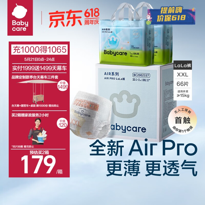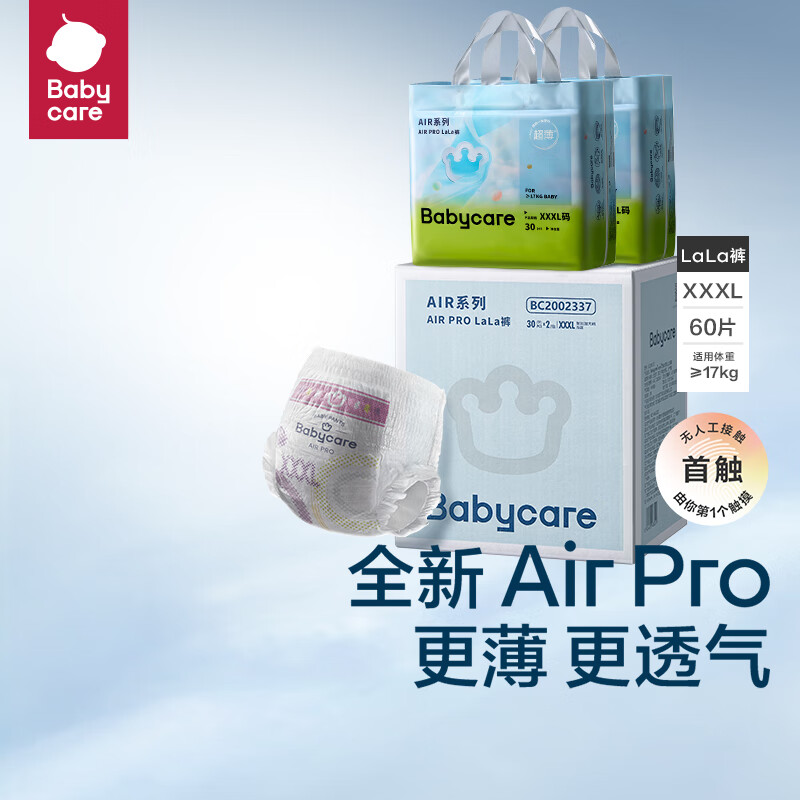 babycare Air pro夏日拉拉裤成长裤加量装超薄透气箱装XXXL60片(>17kg)价格:289.00元!