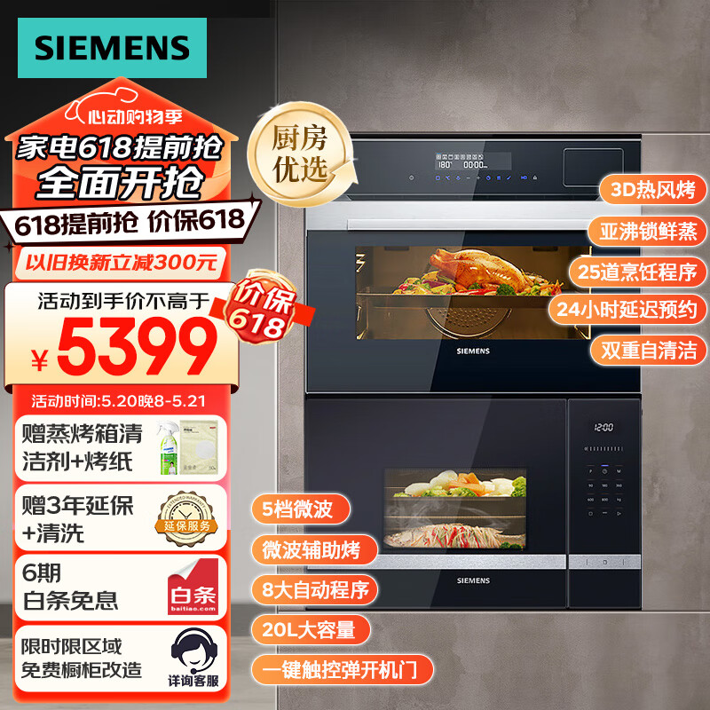 西门子(SIEMENS)微波炉嵌入式蒸烤箱一体机套装智能蒸汽烤箱蒸箱二合一BE525+CS389价格:5399.00元!