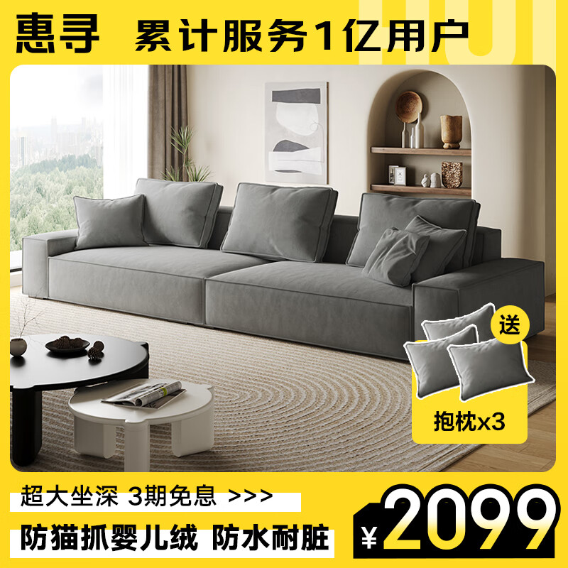 惠寻 京东自有品牌 婴儿绒豆腐块科技布艺沙发大户型五人位3.2米价格:2129.00元!