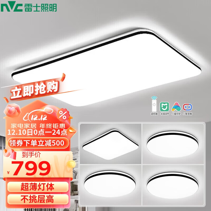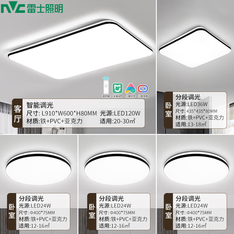 雷士照明(NVC)LED吸顶灯简约客厅大灯卧室餐厅灯具主灯智能三室两厅套餐价格:1299.00元!