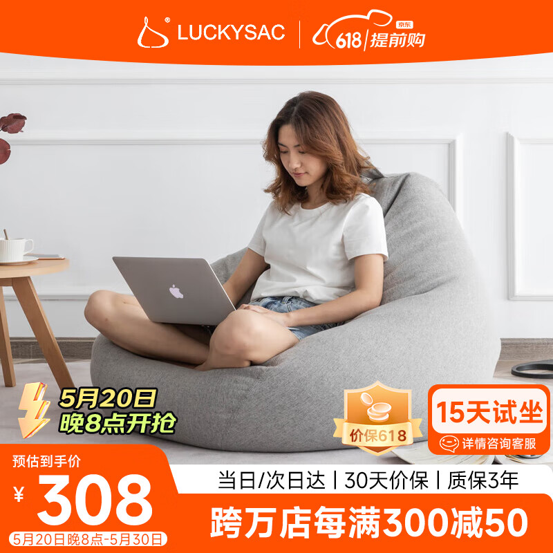 LUCKYSAC懒人沙发豆袋EPP小户型阳台卧室客厅单人小沙发椅子 标准款绅士灰价格:358.00元!