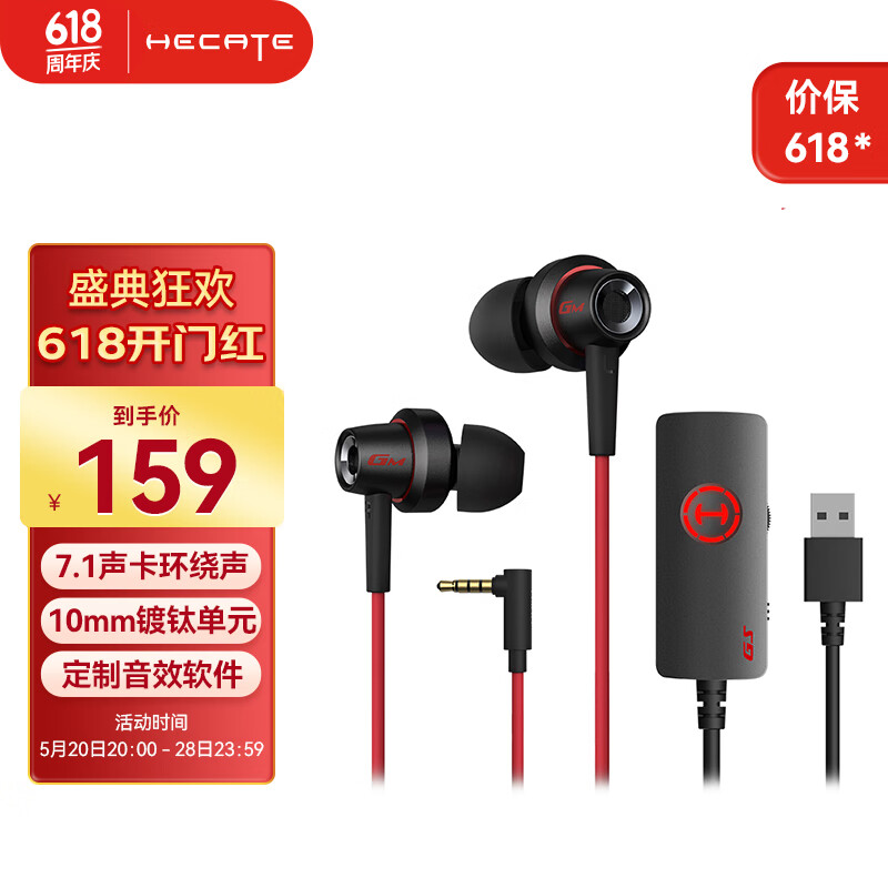 漫步者(EDIFIER)HECATE GM260声卡版 入耳式有线小耳塞游戏耳机 电脑手机耳麦 7.1声道外置声卡 黑红色价格:169.00元!