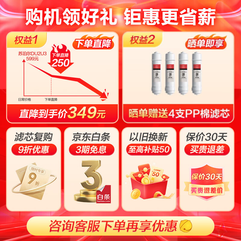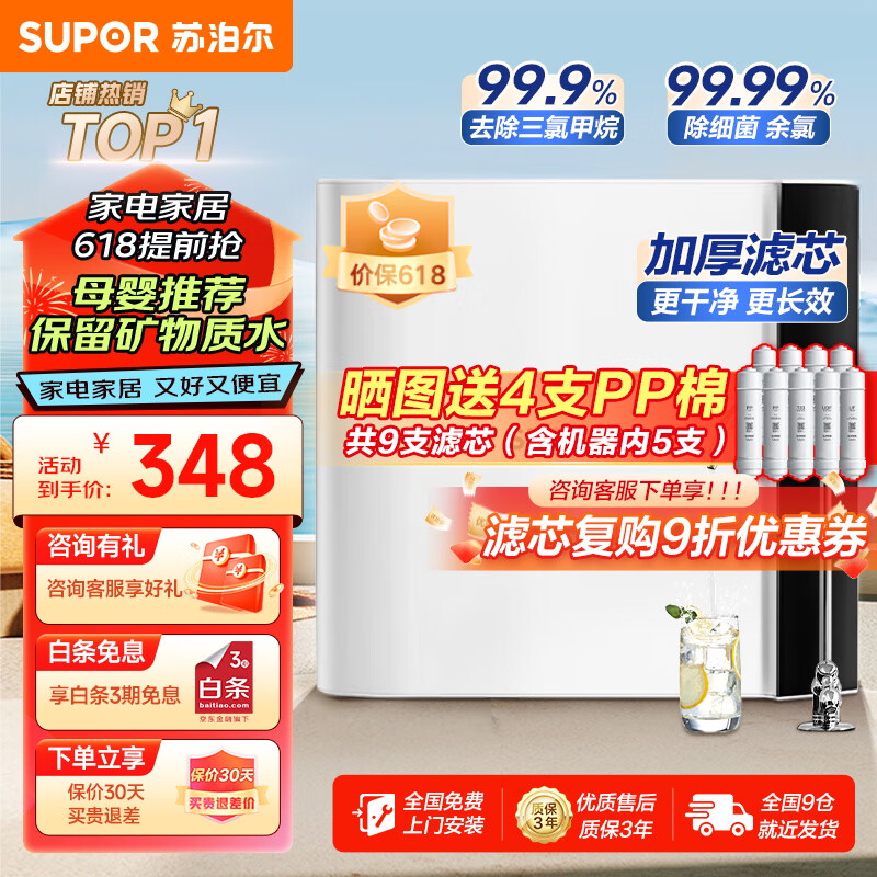苏泊尔(SUPOR)净水器家用超滤机滤水器自来水厨下式净化器DU2U3厨房饮水水龙头台式台上台下过滤器净水机价格:348.00元!