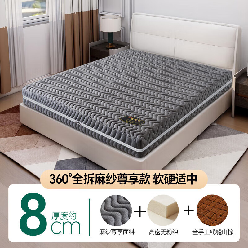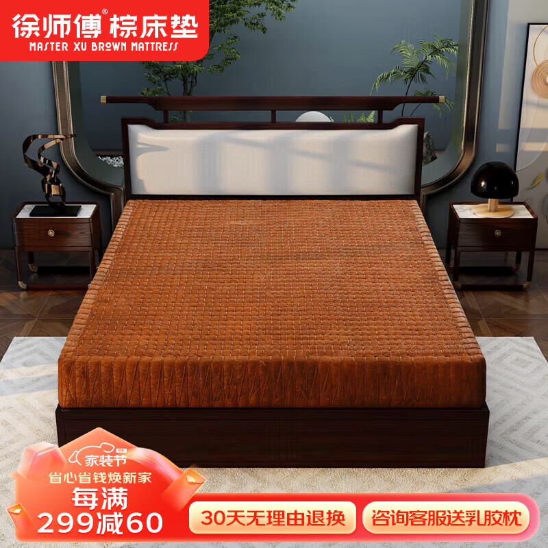徐师傅 全手工山棕床垫硬棕垫薄厚款榻榻米床垫定制折叠 0.9*2米价格:1108.00元!
