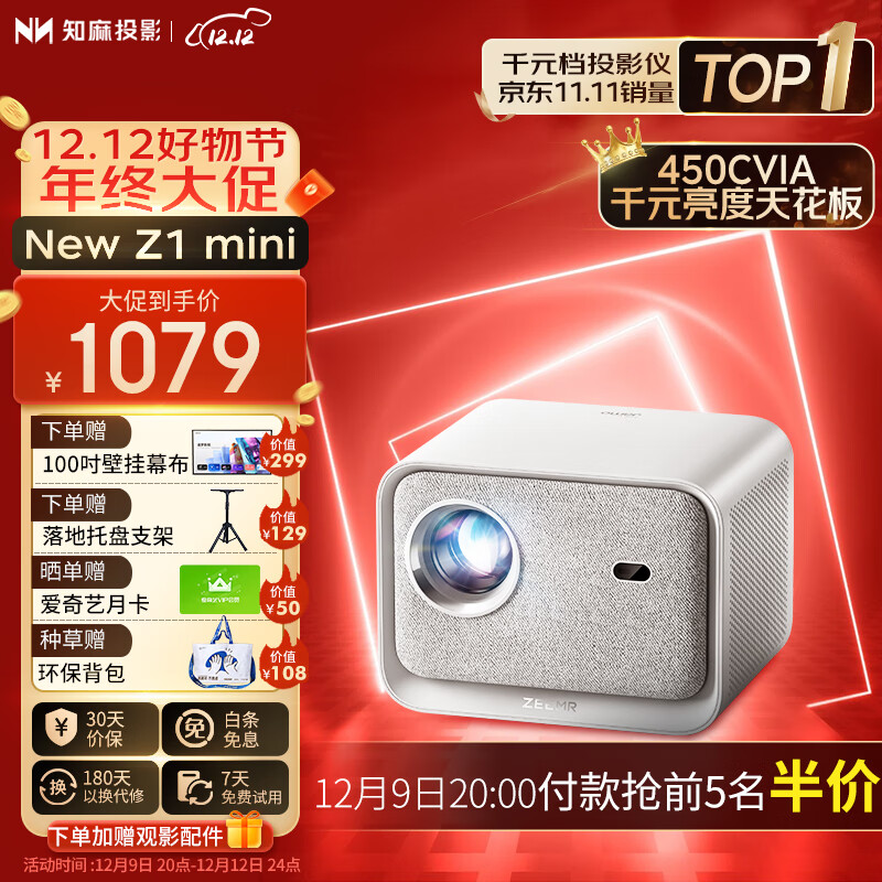 知麻New Z1 mini 2023款 投影仪家用 投影机卧室客厅 智能家庭影院芝麻(450 CVIA流明 全自动校正 全域清晰)价格:1099.00元!
