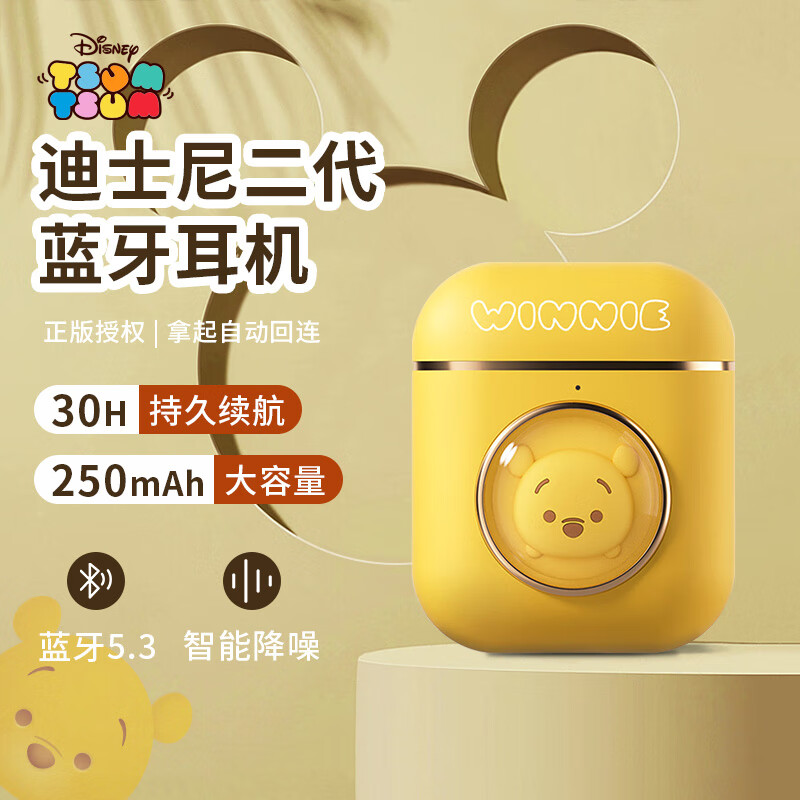 迪士尼(DISNEY)联名款二代太空舱蓝牙耳机真无线高颜值学生党运动音乐游戏耳机 维尼熊-黄色价格:105.00元!