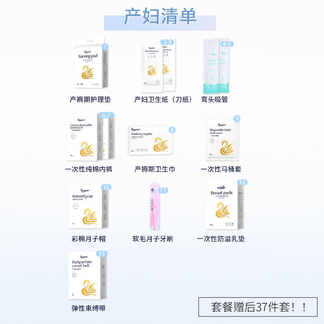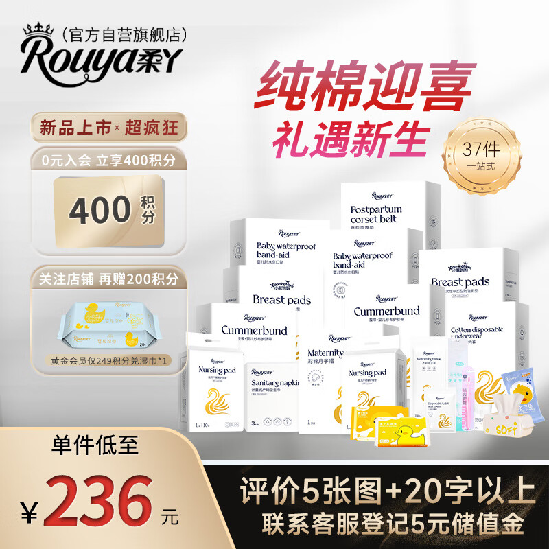 柔丫待产包加量妈咪入院组合坐月子孕妇产前产后母子新生儿礼包37件价格:236.00元!