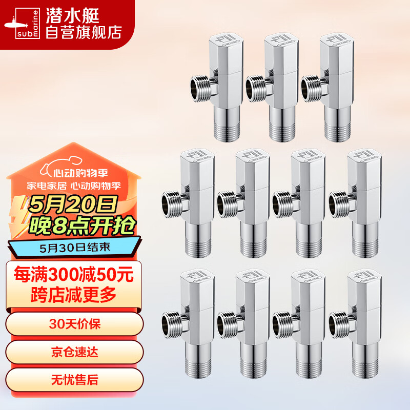 潜水艇(Submarine)F003-11黄铜加厚三角阀冷热通用八字阀国标4分进出水陶瓷阀芯11只价格:388.00元!