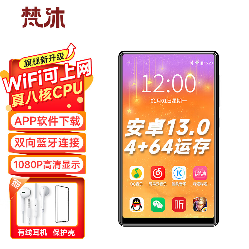 梵沐BF66 智能mp3/mp4音乐播放器WiFi可上网 4+64G 运存 安卓13 mp5在线听歌 高清视频触屏看小说价格:559.00元!