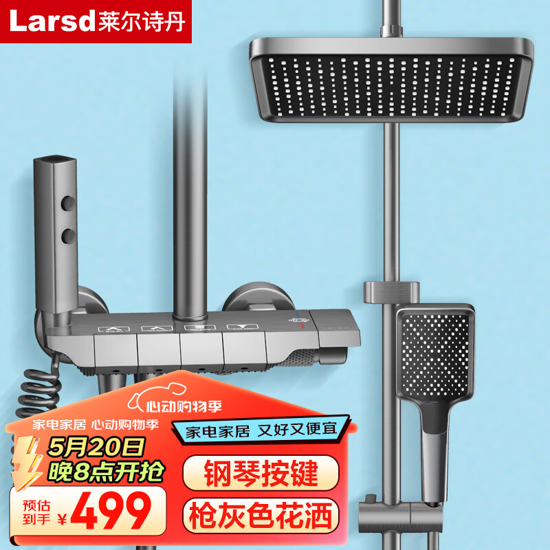 莱尔诗丹淋浴花洒套装增压花洒全套 钢琴键枪灰色浴室洗澡花洒LD10856H价格:699.00元!