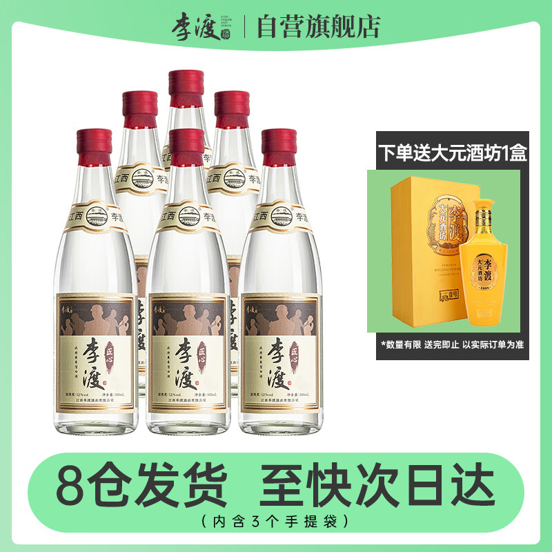 李渡 匠心 兼香型白酒 52度 500ml*6瓶 整箱装价格:1799.00元!