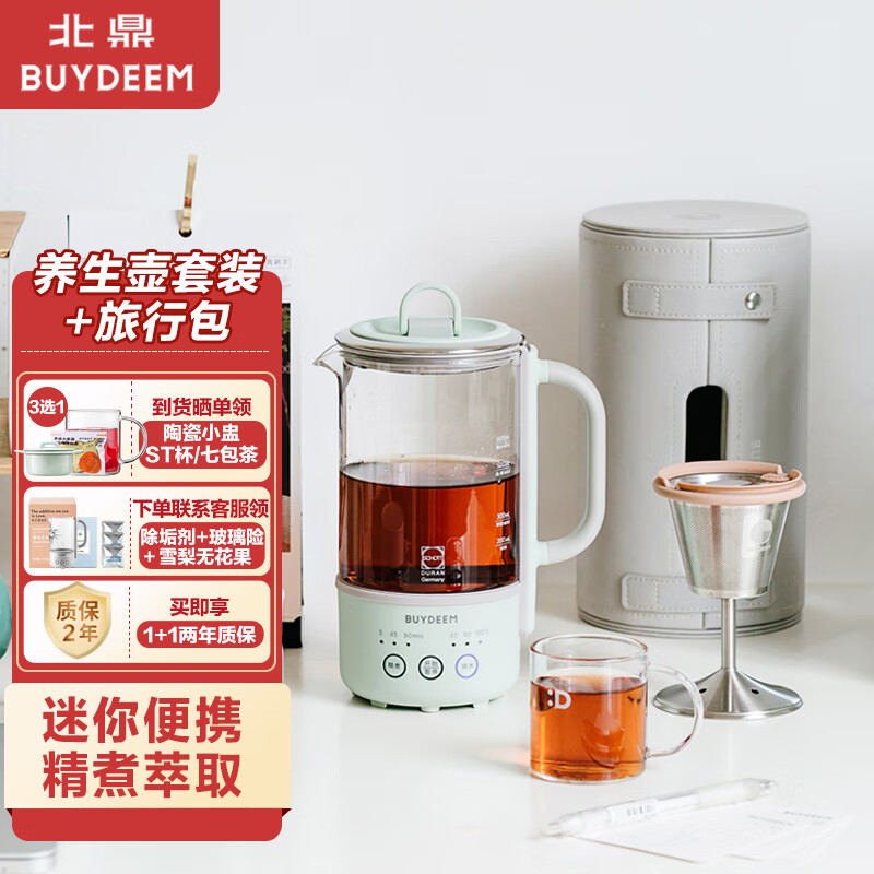 北鼎(Buydeem) K32浅杉绿全配养生壶+A210大象灰旅行包价格:826.00元!