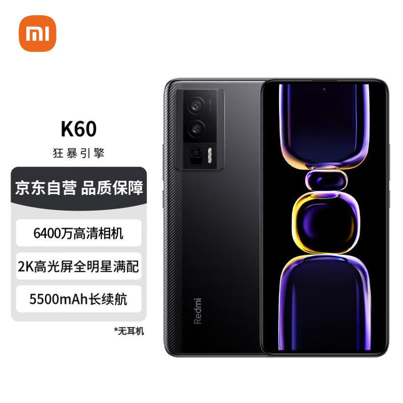Redmi K60 骁龙8+处理器 2K高光屏 6400万超清相机 5500mAh长续航 12GB+512GB 墨羽 小米红米5G价格:3299.00元!