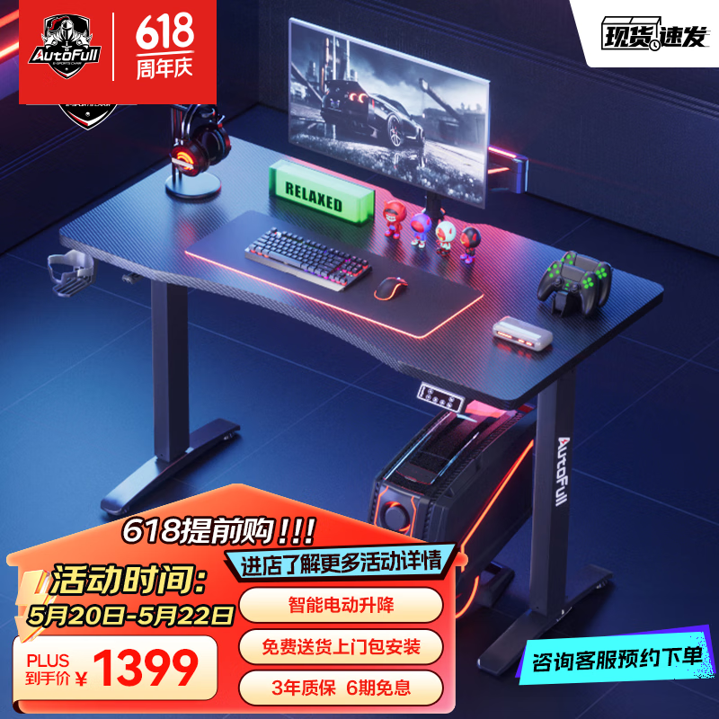 傲风自由装甲A4电竞电脑桌1.4m电动升降 游戏桌办公书桌学习桌桌子价格:1699.00元!