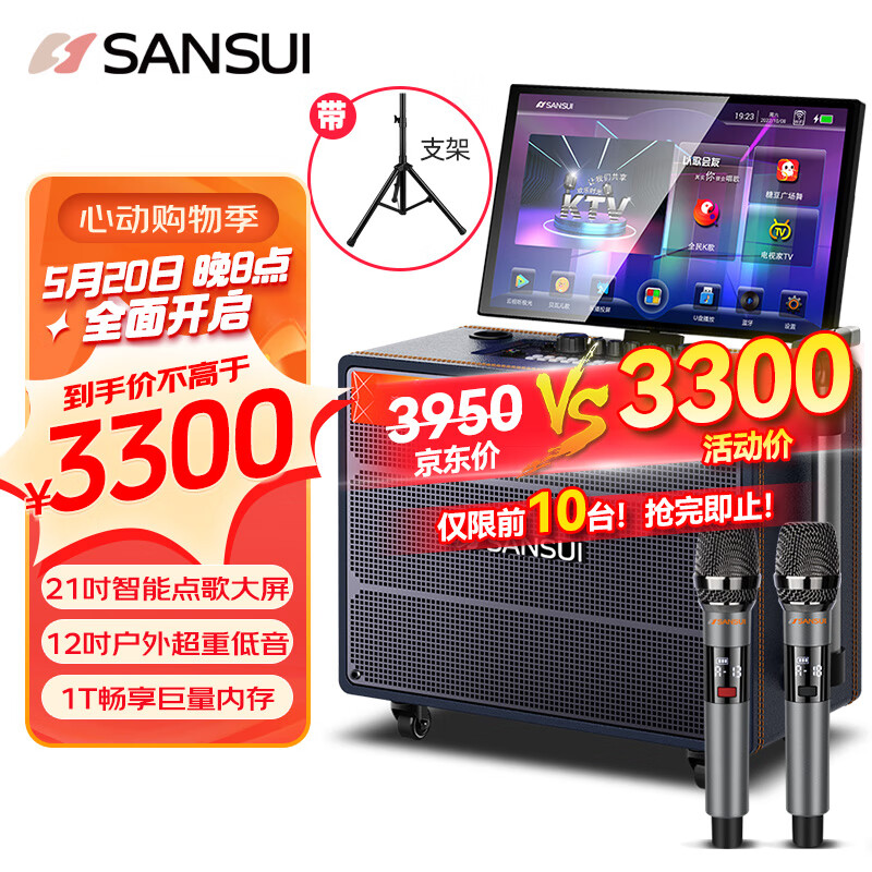 山水(SANSUI)Q129家庭ktv音响套装便携户外广场舞音响带显示屏家用移动k歌音箱点歌机触摸屏一体机卡拉ok机1T价格:3950.00元!