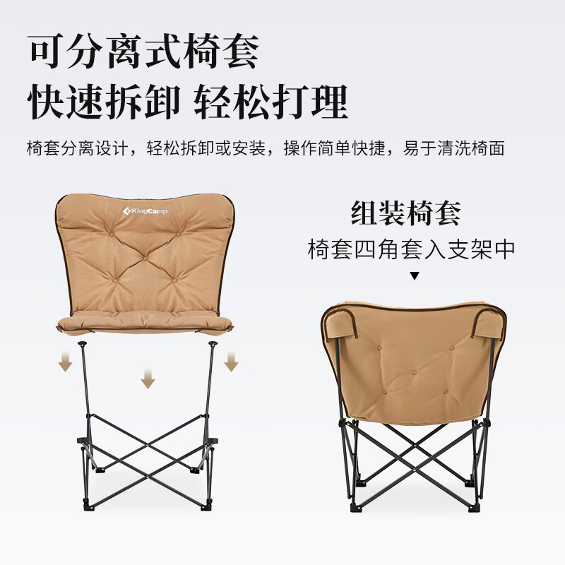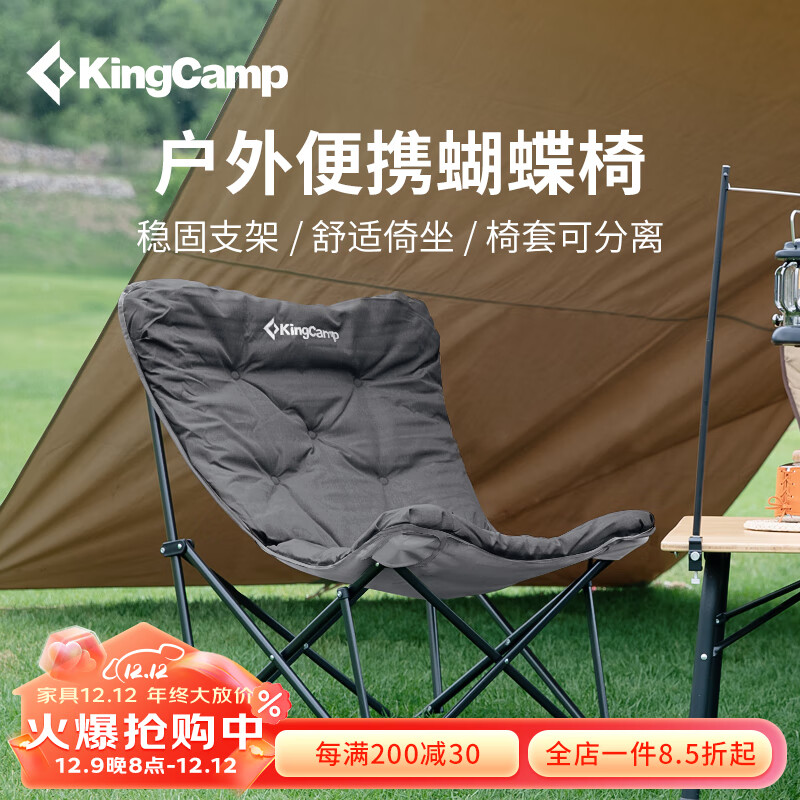 KingCamp折叠椅蝴蝶椅夹棉椅懒人椅沙发椅家用阳台休闲椅子KC2224灰色价格:349.00元!