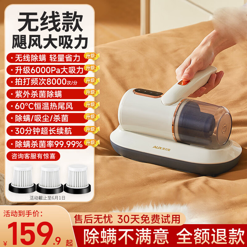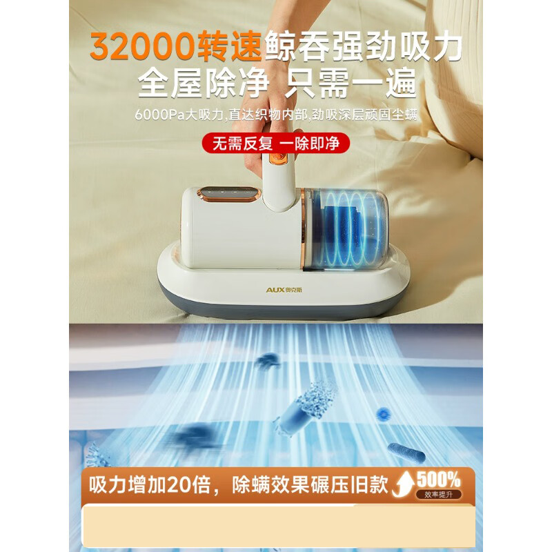奥克斯家用无线除螨仪床上除螨神器紫外线杀菌机吸尘器一机多用AXC-11DC59B 椰奶白【无线长续航+高频双振动+强劲大吸力】价格:199.90元!