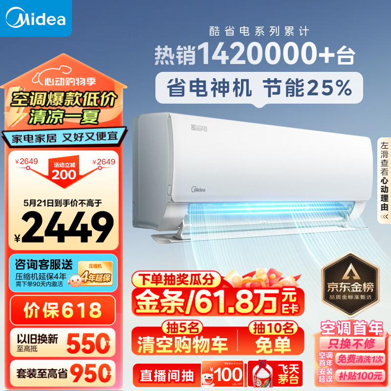 美的(Midea)空调 大1.5匹 酷省电 新一级能效 变频冷暖 自清洁 壁挂式空调挂机 智能家电 KFR-35GW/N8KS1-1价格:2449.00元!