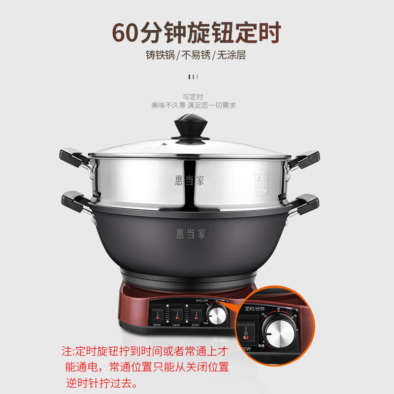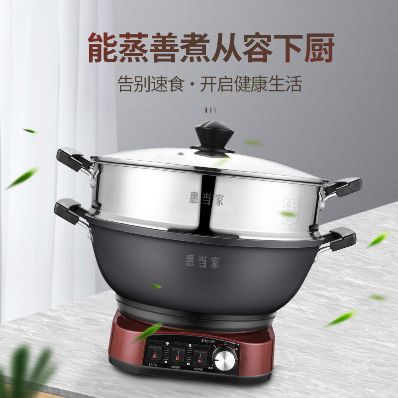 惠当家(Hui Dang Jia)电炒锅多功能电热锅电锅定时电蒸锅一体加厚铸铁锅电煮锅多用途锅HDJDT2-36价格:309.00元!