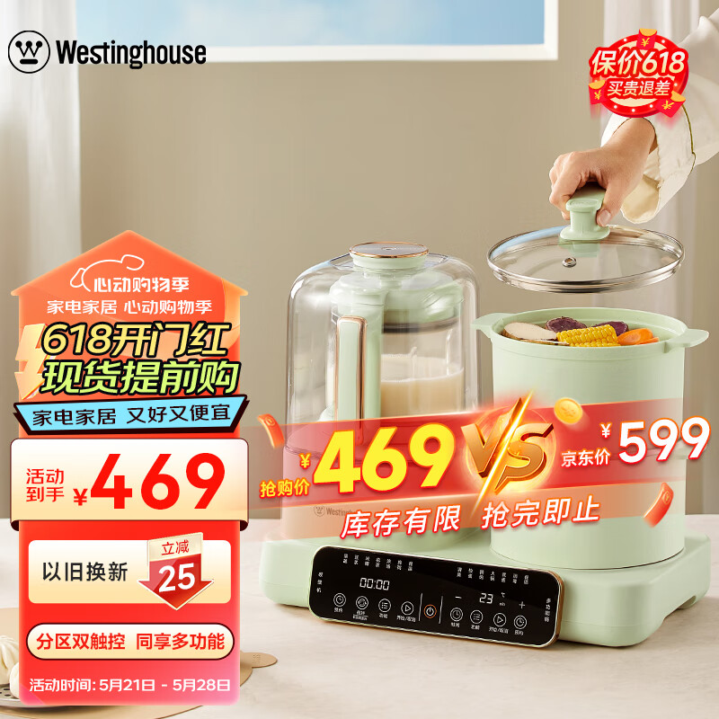 西屋(Westinghouse)多功能破壁机12D预约加热全自动豆浆机家用二合一早餐机蒸煮料理机 WSC12D02价格:469.00元!