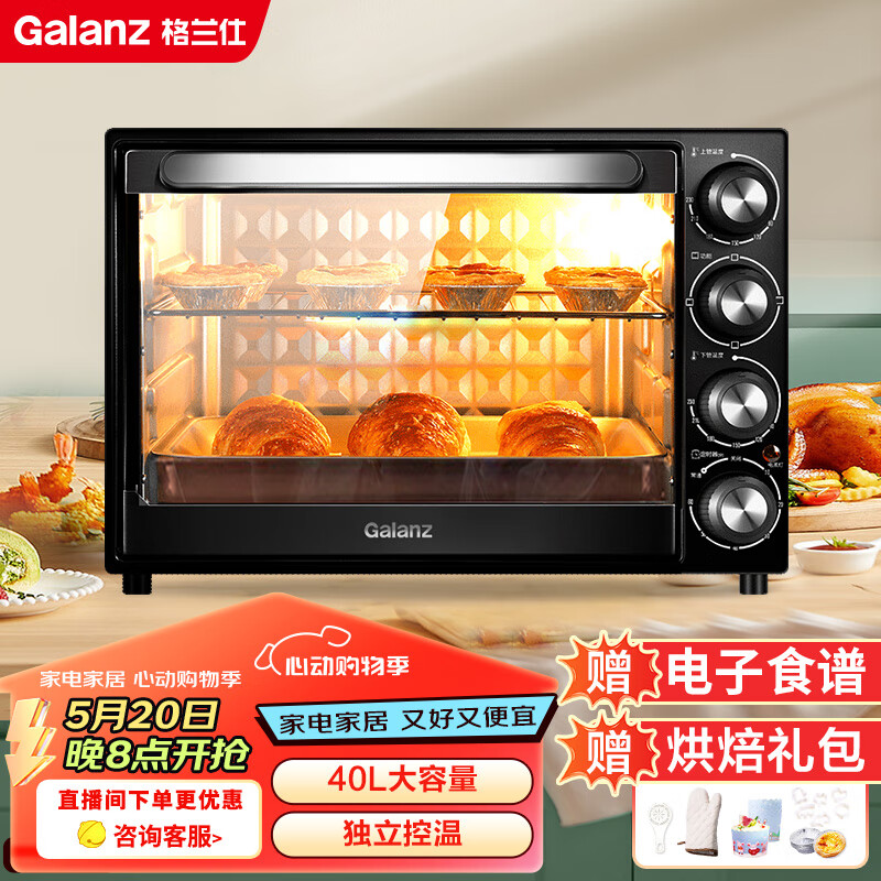 格兰仕(Galanz)烤箱 烤箱家用 电烤箱 40L家用大容量家用烤箱 独立控温/机械操控/多层烤位/多功能烘焙带炉灯K40价格:227.00元!