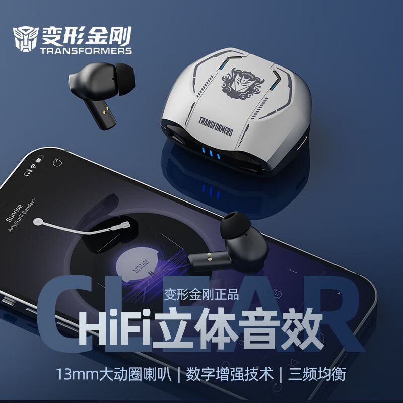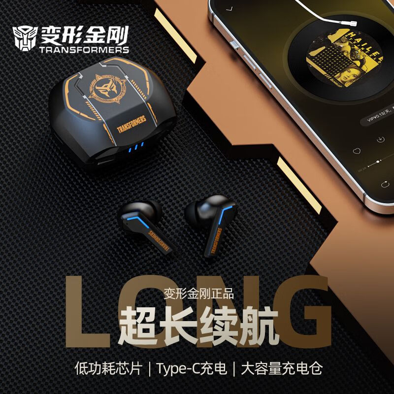 变形金刚(Transformers)蓝牙耳机 真无线入耳式音乐运动降噪耳麦低延迟游戏耳机 适用苹果华为小米手机【霸天虎】价格:79.00元!