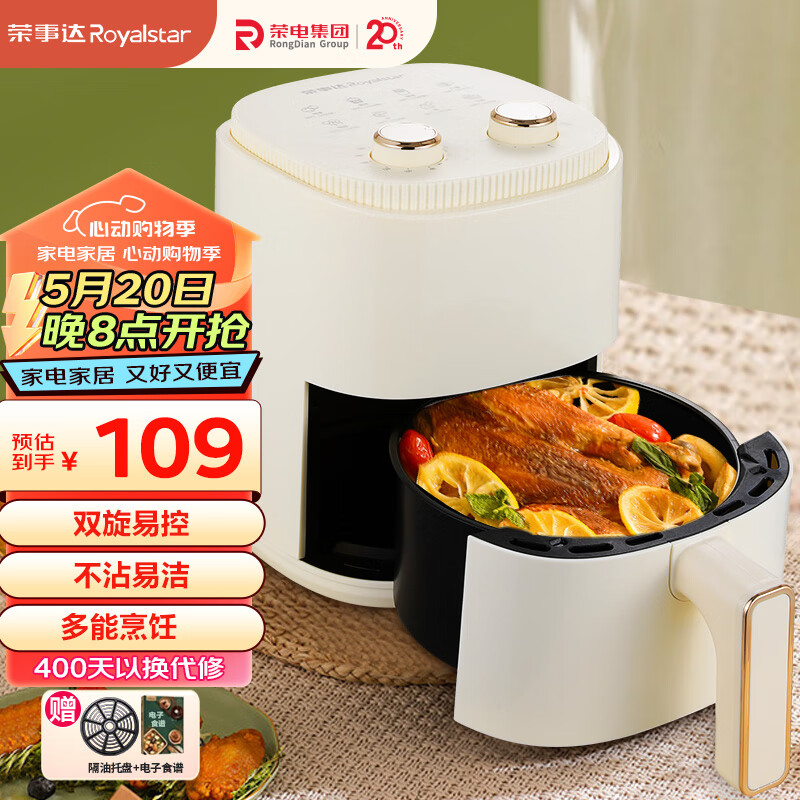 荣事达空气炸锅家用多功能3L小巧容量电炸锅无油烟不沾低脂煎炸锅薯条机RS-AF828价格:109.00元!