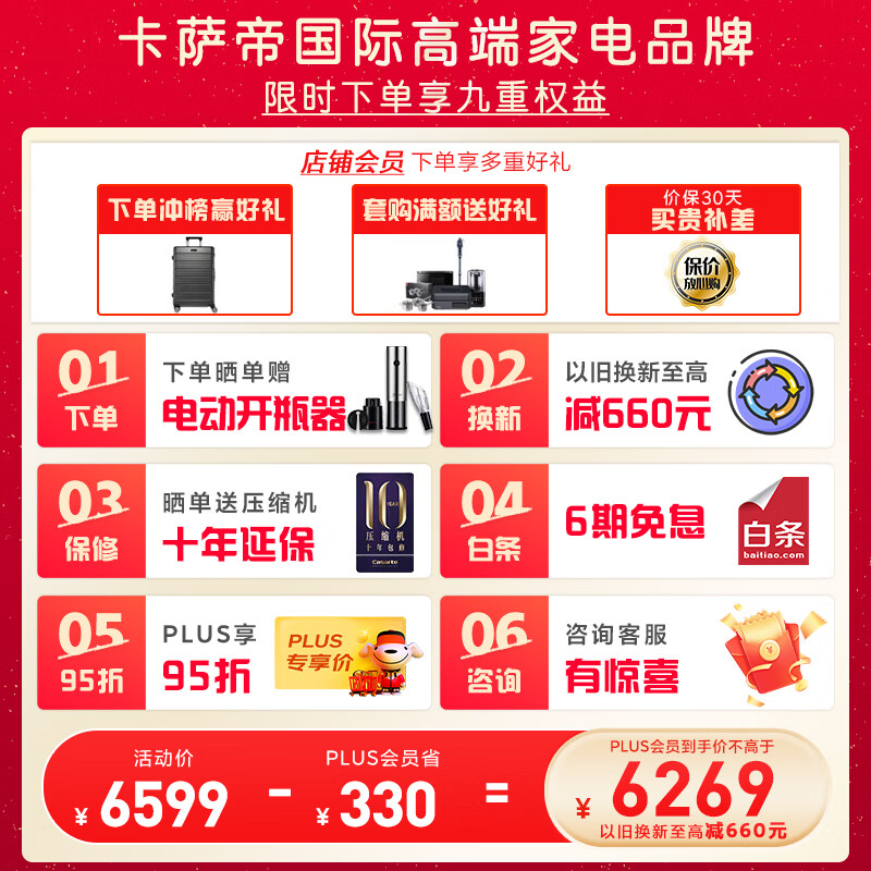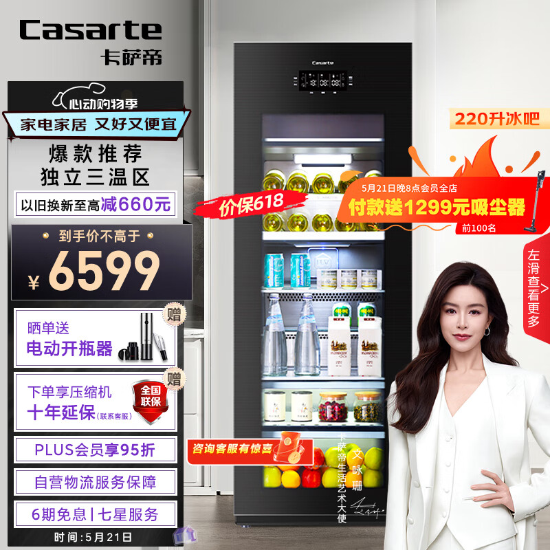 卡萨帝(Casarte)220升三温区家用办公室冷藏柜暖藏冰吧 茶叶饮料水果保鲜柜小型冰箱LC-220JE 以旧换新价格:6599.00元!