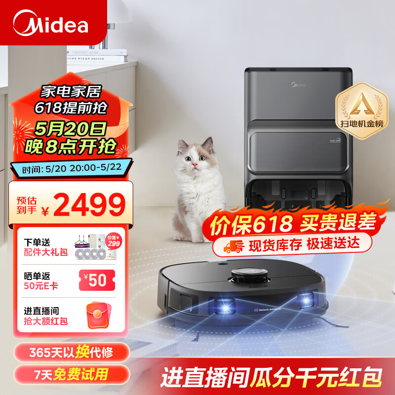 美的(Midea)扫地机器人扫拖一体 灵眸V12灰 自动集尘扫拖洗烘一体机自动清洗拖布洗地机拖地机价格:2699.00元!