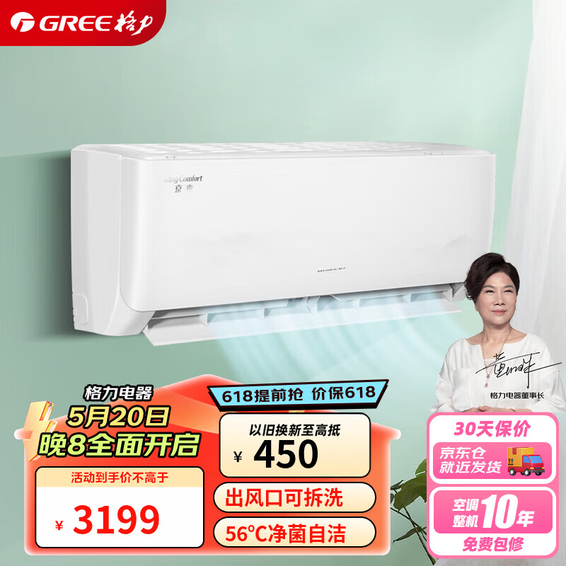 格力(GREE)1.5匹 京爽 新一级能效 变频冷暖 高温自清洁 壁挂式空调挂机KFR-35GW/(35587)FNhAd-B1价格:3199.00元!