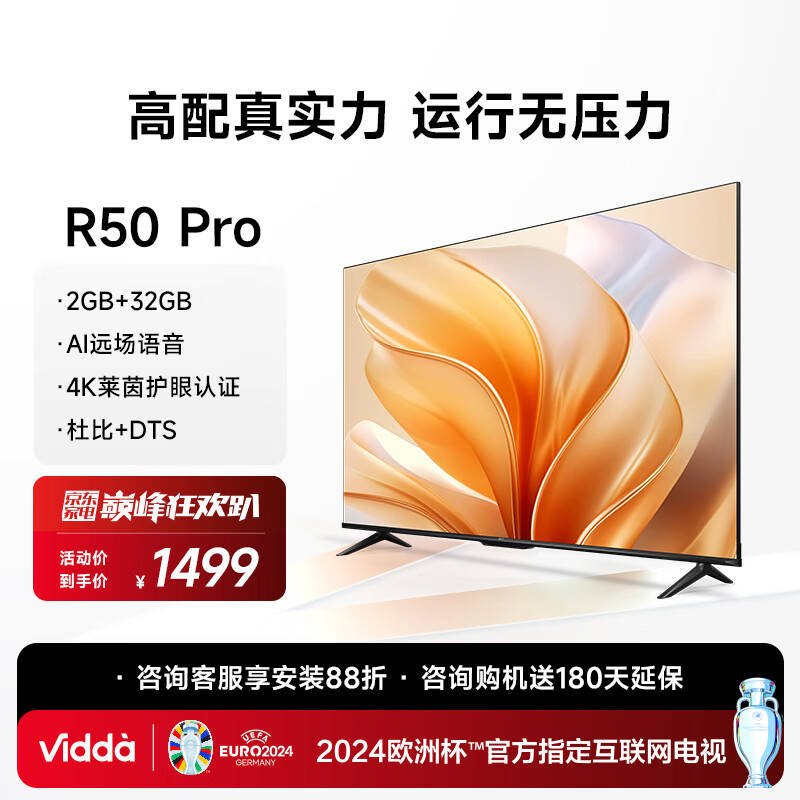 Vidda R50 Pro 海信电视 50英寸 2G+32G 远场语音 4K超高清 超薄屏 游戏液晶电视以旧换新50V1K-R价格:1699.00元!