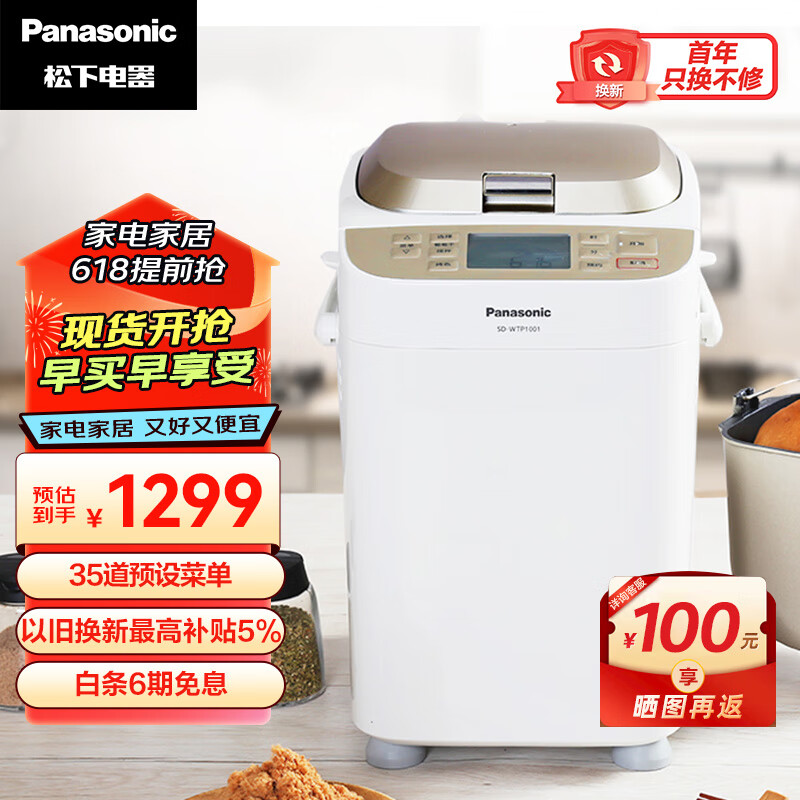 松下(Panasonic) 面包机 烤面包机 家用全自动变频自动投放 35个菜单 多功能和面500g SD-WTP1001价格:1899.00元!