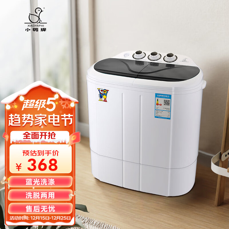 小鸭2.5公斤双缸小型半自动迷你洗衣机 婴儿小洗衣机 内衣裤洗衣机小型 蓝光款 XPB25-1680S价格:369.00元!