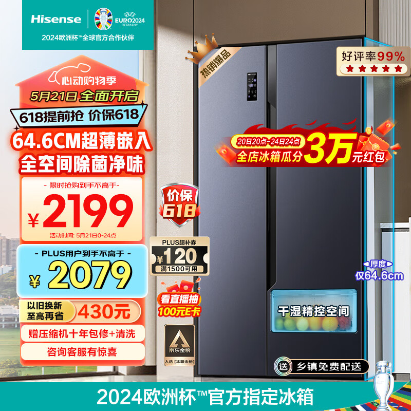 海信(Hisense)电冰箱双开门 家用对开门大容量超薄嵌入式536升一级能效风冷无霜BCD-536WFK1DPUT价格:2399.00元!