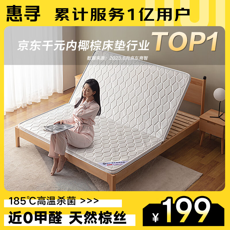 惠寻 京东自有品牌 椰棕床垫硬棕垫薄床垫1.2*2米5cm棕芯3cm折叠价格:199.00元!