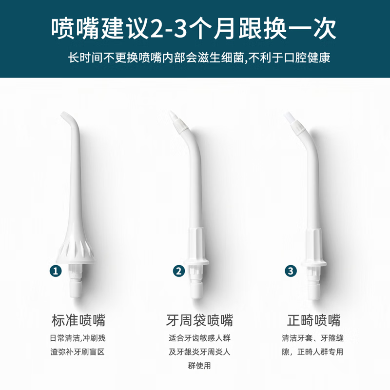 喷头类型:舌苔清洁喷头,标准喷头,正畸喷头
